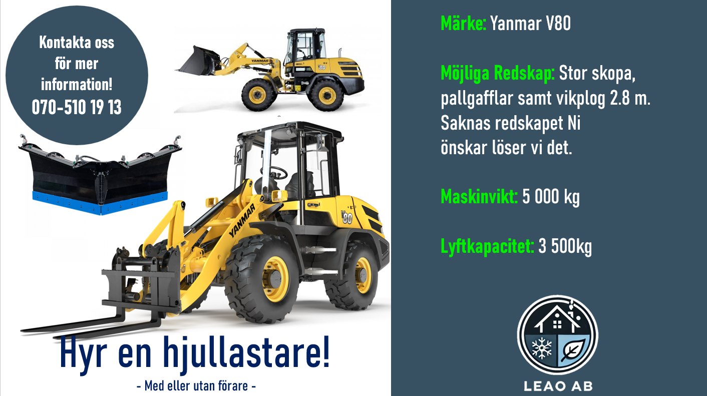 Ja, vi erbjuder maskinell uthyrning med eller utan förare, inklusive hjullastare, grävmaskiner, UTV/Fyrhjuling och sopmaskiner.