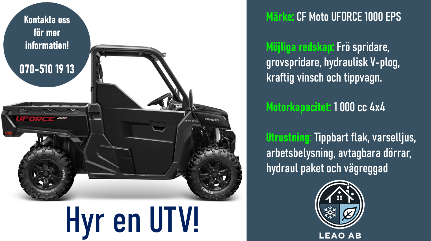 Ja, vi erbjuder maskinell uthyrning med eller utan förare, inklusive hjullastare, grävmaskiner, UTV/Fyrhjuling och sopmaskiner.